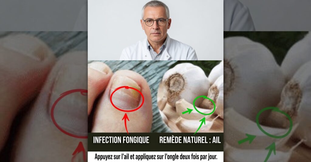 Prépare une infusion d’ail, laisse refroidir, imbibe une gaze ou un linge propre et applique sur la peau ou les ongles contaminés. Laisse agir un moment avant de retirer et de bien sécher.