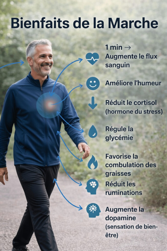 Dans cet article, vous allez découvrir comment de courtes marches intégrées à votre quotidien peuvent soutenir naturellement votre énergie, votre humeur et votre confort général, ainsi que les effets surprenants qui apparaissent à différents moments de l’effort.