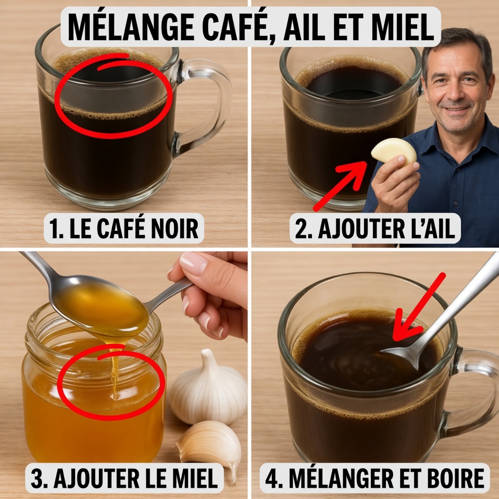 L’idée fonctionne grâce à la synergie entre la caféine du café, l’allicine de l’ail et les enzymes du miel : ensemble, ils favorisent une sensation de dynamisme et aident à chasser l’impression de matinée « lourde » ou « lente ». Résultat : un corps plus alerte, plus réactif, et une énergie qui se met en route rapidement.