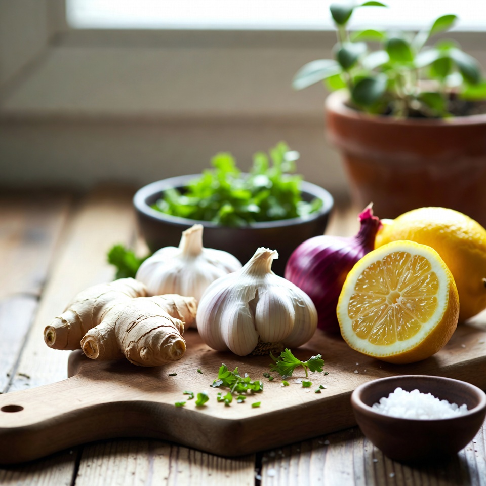 Le mélange à base de gingembre râpé, d’oignon, d’ail et de jus de citron représente un remède naturel complet pour assainir les voies respiratoires, réduire la congestion, soutenir l’immunité et favoriser l’élimination des toxines.