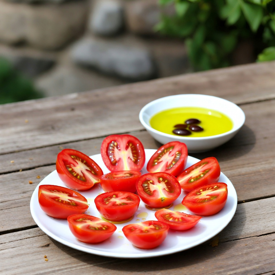 • Tomates rôties au four avec un léger filet d’huile d’olive ;