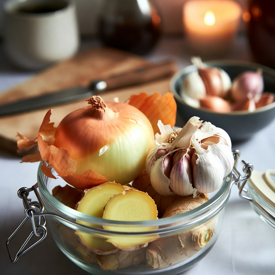 Prenez un gros oignon, de l’ail et du gingembre. Coupez-les en morceaux et mettez-les dans un récipient hermétique pour voir ce qui se passe.