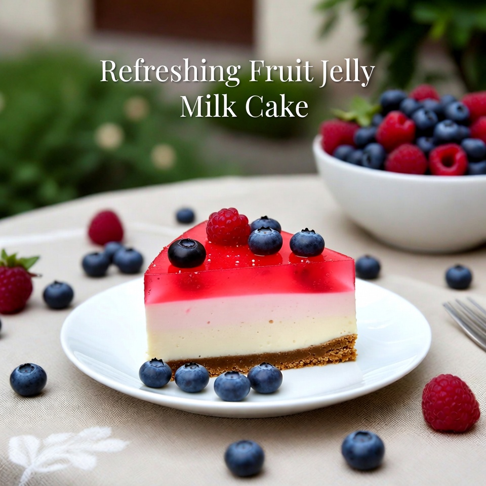 Ce gâteau gélifié au lait et aux fruits est une recette simple, élégante et parfaite pour sublimer n’importe quel menu de dessert, tout en apportant une touche de fraîcheur et de couleur à votre table.