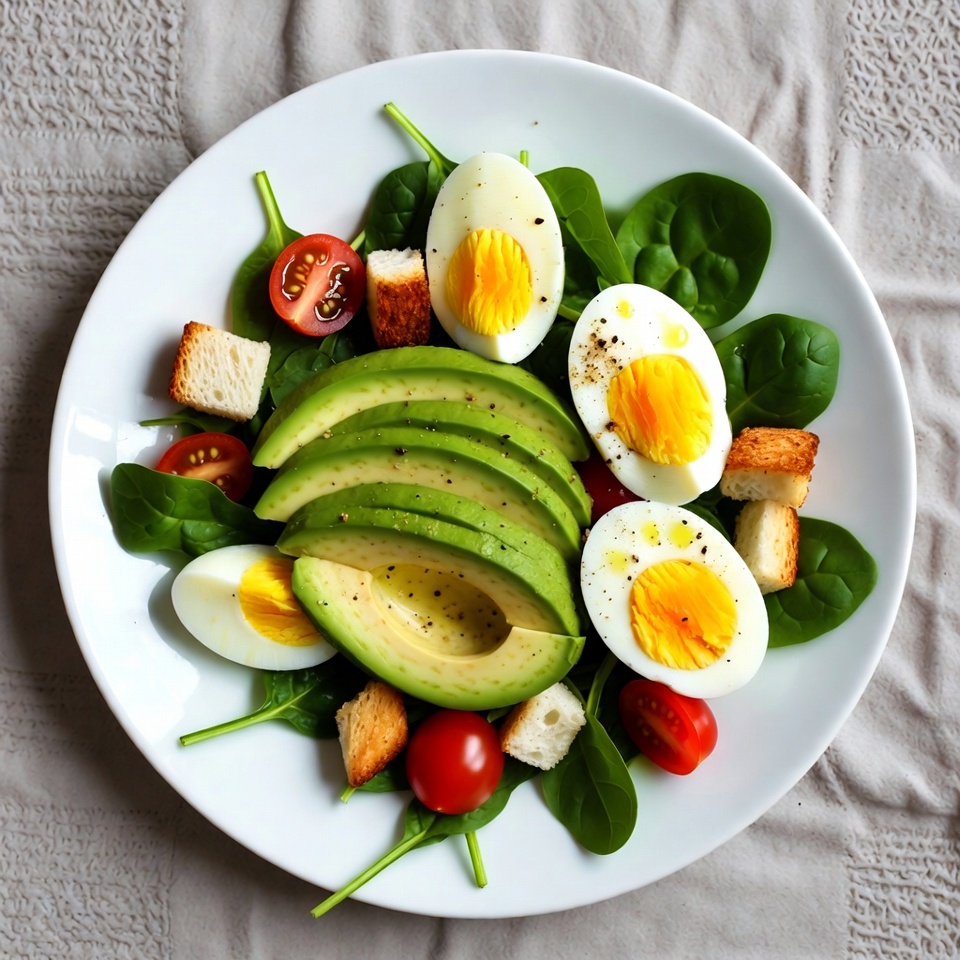 Une salade d’œufs à l’avocat et aux épinards saine, onctueuse et riche en protéines, idéale pour un déjeuner rapide ou un dîner léger. L’avocat crémeux, les épinards frais et les œufs nourrissants se combinent pour une assiette à la fois équilibrée et savoureuse.