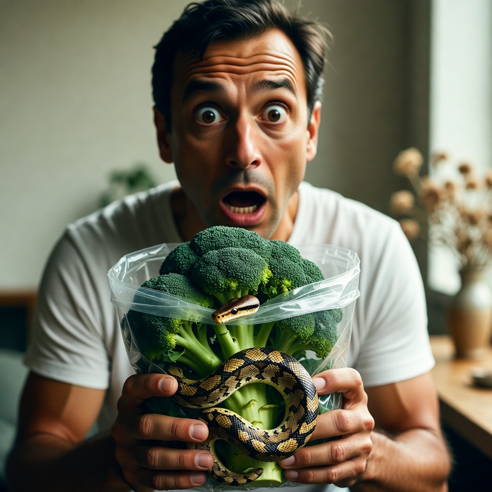 Selon la chaîne TVBS, Neville Linton, habitant de Birmingham (Royaume‑Uni), s’était rendu dans un supermarché Aldi pour remplir son réfrigérateur. Parmi ses achats : un sachet de brocoli apparemment tout à fait ordinaire. Ce n’est que trois jours plus tard, en retirant l’emballage plastique sur son plan de travail, qu’il a découvert l’intrus lové dans le légume. Après un examen plus attentif, il a compris que le serpent était toujours vivant.